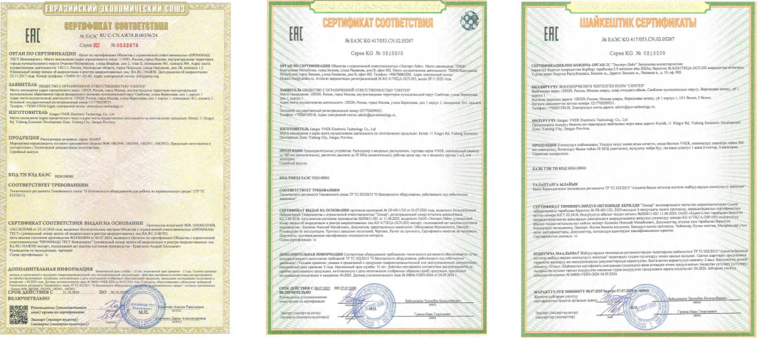 يعتمد كل المحتوى على قدرات المنتج الحقيقية والشهادات الحالية، مثل EAC TR CU 012/020/032 وPAC لأجهزة قياس الدوامة، وEAC TR CU 012 لأجهزة قياس Coriolis، بالإضافة إلى موافقات CE-EMC وATEX لسلسلة مختارة.