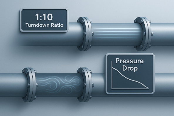 يضمن حجم المقياس الصحيح بقاء التدفق ضمن المستوى الأمثل نطاق القياس (منطقة استقرار رقم رينولدز) ، وتجنب عدم الدقة في التدفق المنخفض أو التشبع الزائد عن الحد.