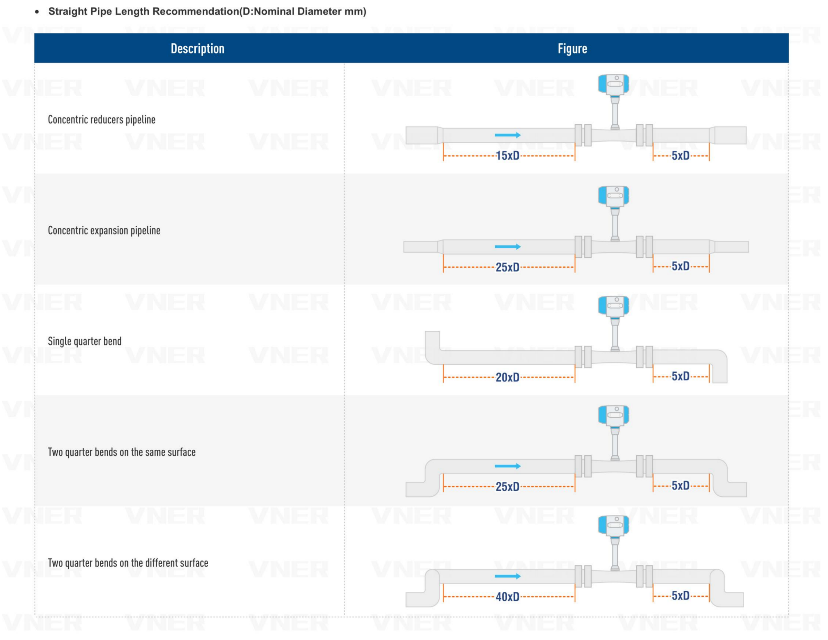 بغض النظر عن تكوين التعويض، تكون مقاييس التدفق الدوامي حساسة لتشوهات التدفق الناتجة عن هندسة الأنابيب في المنبع. إن تلبية متطلبات التشغيل المباشر أمر غير قابل للتفاوض لتحقيق الدقة المقدرة.